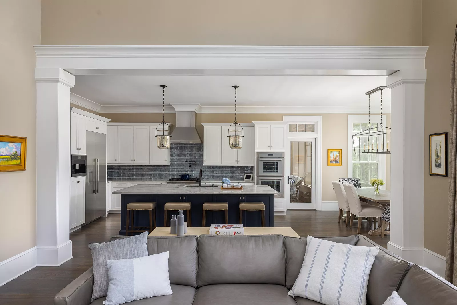 This new Kiawah Island custom home, nestled in the low-country landscape of The Preserve, boasts 3,547 SF of living space, including a main floor primary suite, three generous bedrooms with en-suite baths, and an expansive open floor plan.